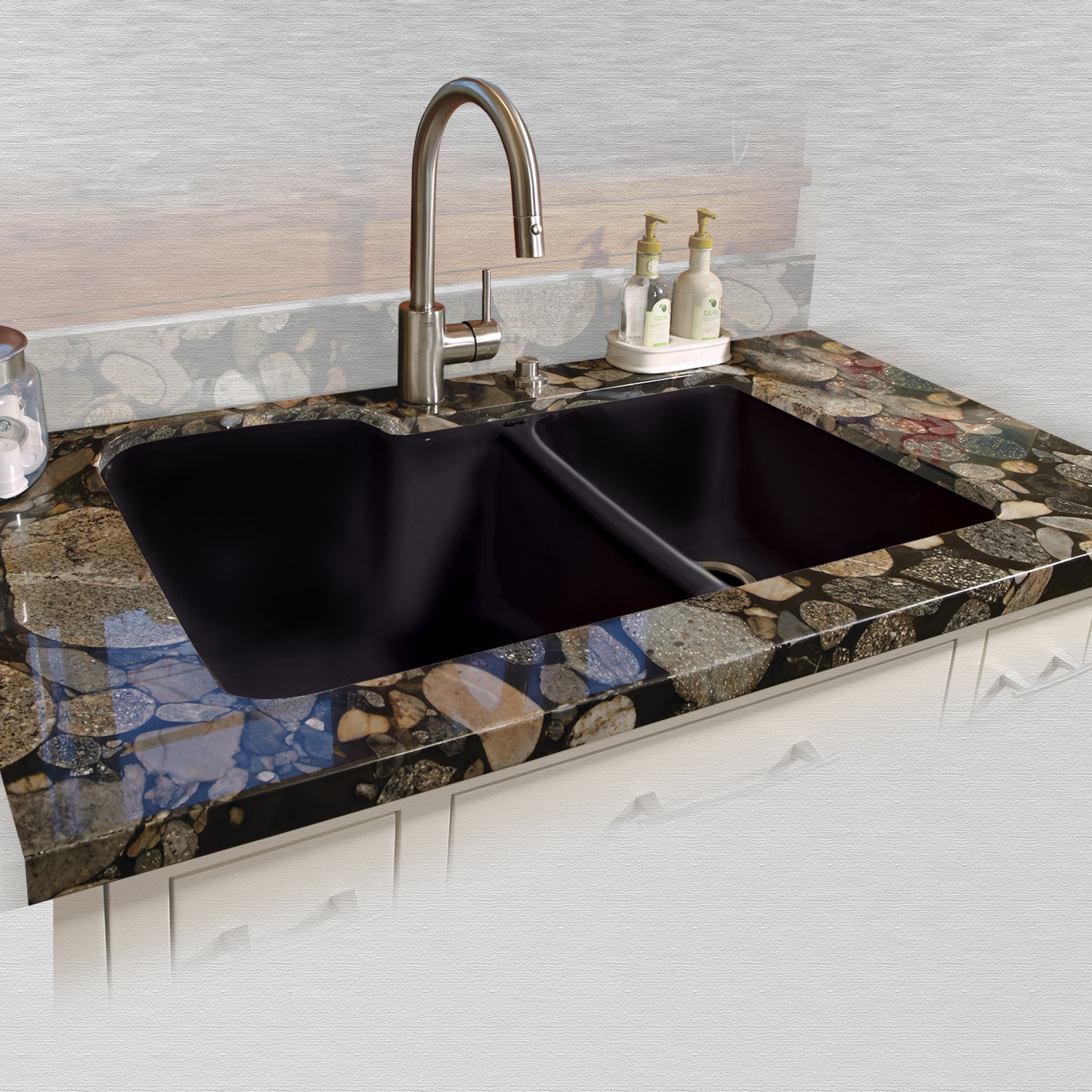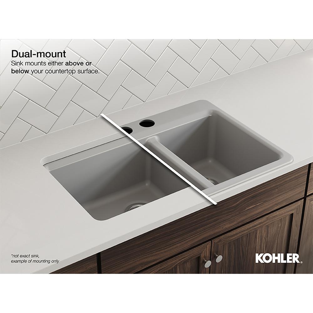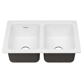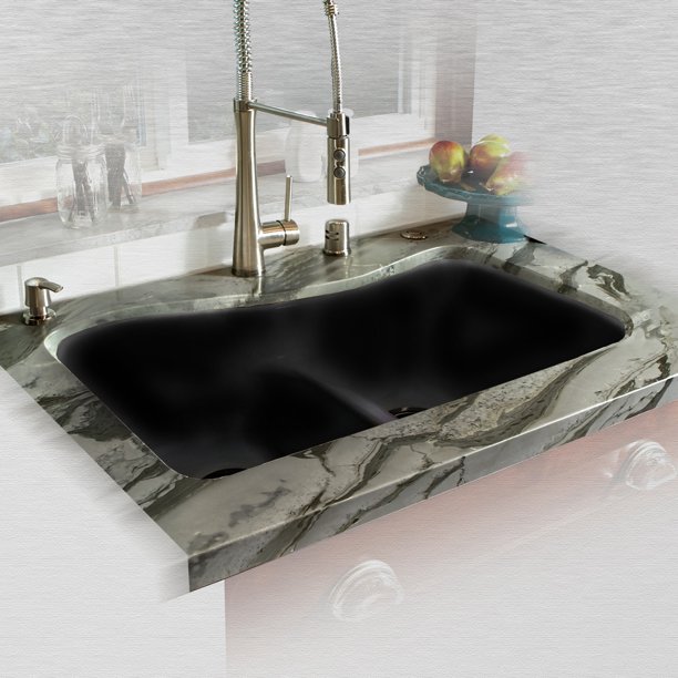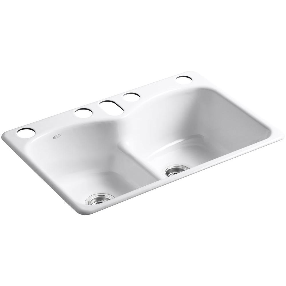 Vintage Cast Iron Kitchen Sink Double Bowl 4-Hole Rectangular Bitter Pink U.S.A. KOHLERK 6625-95 Drop-In/Undermount Cast-Iron 33" Double Bowl Kitchen Sink White. This modern kitchen sink is 29.75 x 20.75 x 10 inches, and it's designed to be undermounted on your counter. The sink is made from heavy-duty, dent-resistant T304 stainless steel, and its To be clear: This sink isn't made of solid porcelainit's constructed from cast iron with a porcelain enamel finish. Undermount Kitchen Sinks. Refine By Brand. Blanco. 32 Inch Premier Undermount Double Bowl Kitchen Sink Kit with Heavy Duty Stainless Steel, 18 Gauge Construction and NoiseDefend Washer